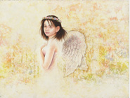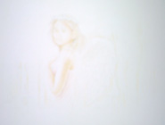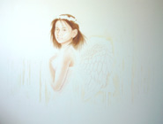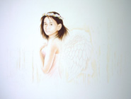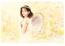 天使とのバランスをみながら背景に淡く色をのせていきます。