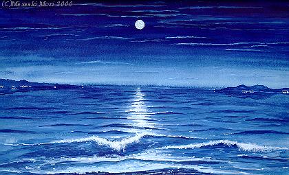 沖縄の浜辺で満月の夜に