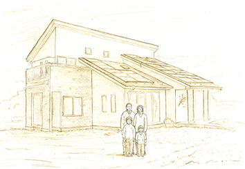 ご依頼でお描きしたご新居とご家族の絵画です。